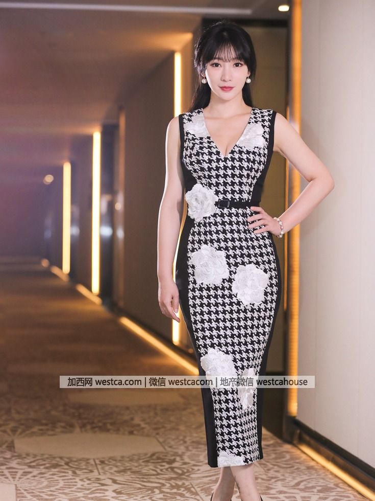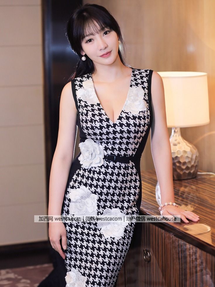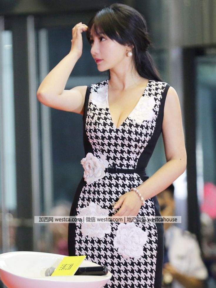 当天,柳岩身穿一袭黑白千鸟格裙,勾勒优雅身形大方端庄,事业线显露无疑。(图源:VCG)