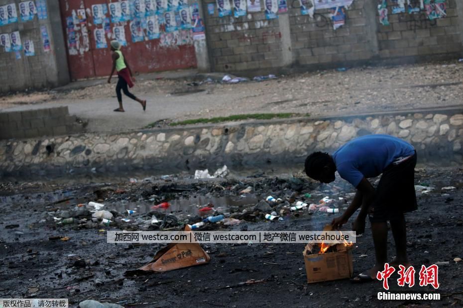 海地首都太子港的民眾在大街上燒火取暖。