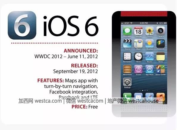 iOS6操作系统加入谷歌地图和Youtube应用,内置苹果自家地图、turn-by-turn导航功能,集成Facebook、Passbook,支持LTE网络。