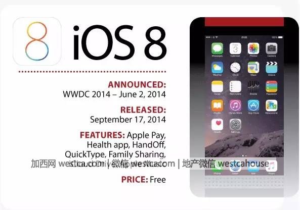 iOS8加入ApplePay、Health健康应用、HandOff、QuickType、家庭分享、iCloudDrive、第三方键盘支持以及AppleMusic等功能。相机加入延时摄影模式,支持语音激活Siri。