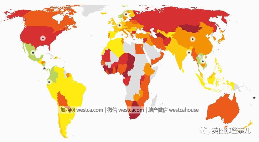 (颜色越深,说明越不幸福)