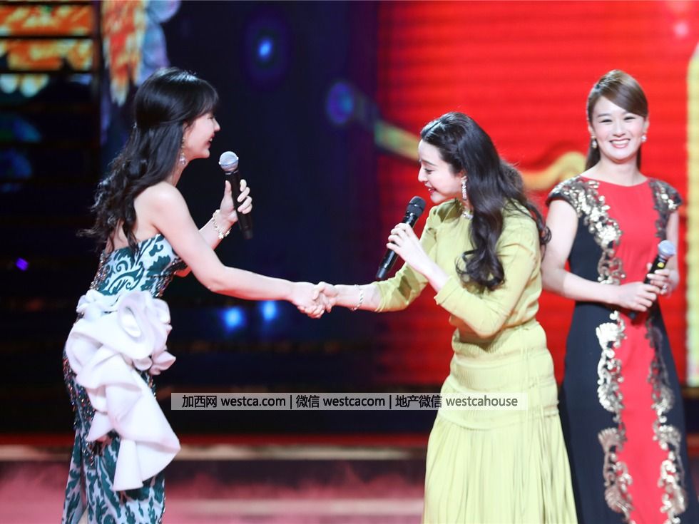 1月10日,辽视春晚录制现场,范冰冰一身嫩绿裙清纯现身演唱歌曲,并与主持人柳岩、脸脸等同台互动,两大女神罕见同台,令网友欢呼。