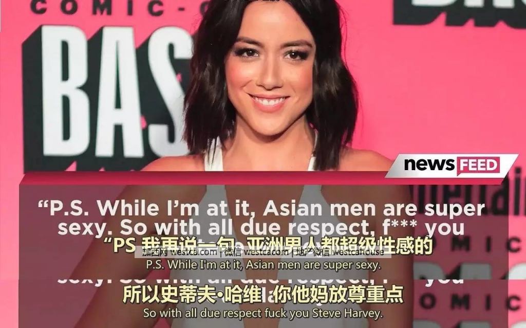 對於這種明顯歧視亞裔的行為,可盈懟得也是毫不客氣——我再說壹句,亞洲男人都超級性感的所以我冒昧地說壹句,去你媽的史蒂夫·哈維