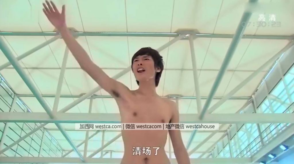 有一天他们大摇大摆地来到泳池边,用力脱下浴袍,展现在眼前的是毫无健身痕迹的东亚弱鸡身材——