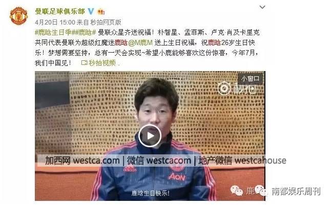 去年他生日,朴智星、孟菲斯、卢克?肖及卡里克更共同代表曼联为鹿晗送生日祝福,并邀请鹿晗7月夏季见。