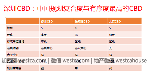 相比於北京、上海,深圳CBD最強的地方在於其早期完整的規劃、肆通八達的銜接。沒有出現潘石屹所說的:北京把CBD規劃在國貿周圍之後,卡在長安街和東叁環上。