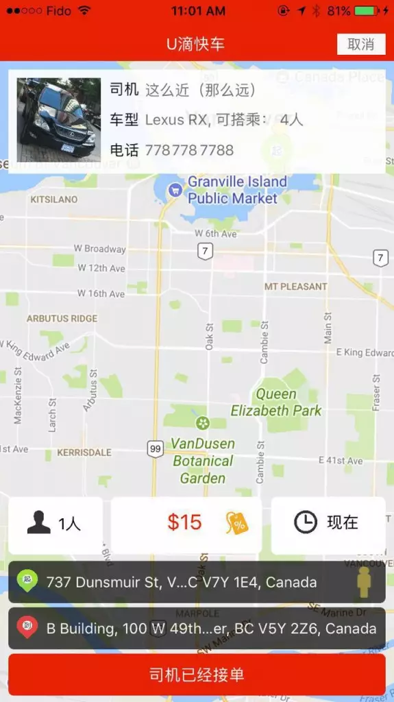 U滴快車是最新最受歡迎的加拿大Uber +滴滴打車