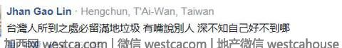 崗山之眼的不文明游客行徑壹經曝光便引發了許多台灣網友的談論,其中很大壹部分人認為台灣人的公德標准確實不高,需要改進,“台灣人本來就沒有比較優越,作過服務業的就知道”、“以前在機構服務最討厭的就是台灣人”。