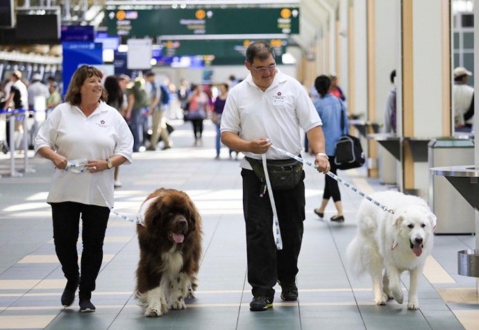 之前YVR与圣约翰救护犬项目(St. John Ambulance’s Therapy Dog program)合作。总共有7只狗来机场“巡逻”。