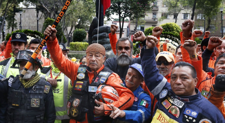 9月19日 參與救援的墨西哥消防員在廣場上紀念遇難的人民 圖源:NPR