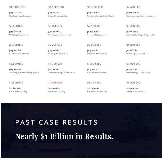 在其官网上,你会发现一个很醒目的部分就是罗列的历年来该律所为客户争取到的巨额赔偿金的新闻。
