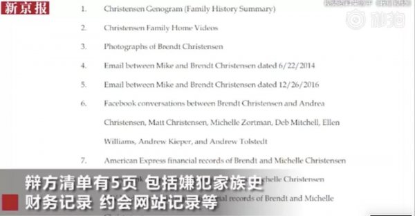 辯方也提供了5頁的證據清單,其中包括克裡斯滕森家庭錄像、他在約會網站“OK Cupid”上的記錄、以及與幾名女性在社交媒體的通訊記錄和電子郵件。