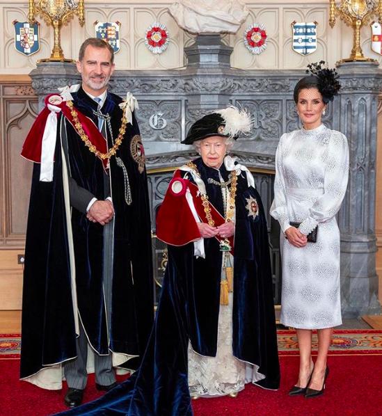 伊麗莎白女王率領英國皇室成員,與西班牙國王費利佩和西班牙王後萊蒂齊亞,以及荷蘭國王和王後參加了在溫莎城堡舉行的壹年壹度的嘉德勳章授勳儀式(2019 Order of the Garter ceremony ),這是英國歷史最悠久最高級別的榮譽勳章,由愛德華叁世在1348年設定,用來表彰對國家和國君有貢獻的人。