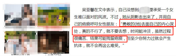 但是吳亞馨在之前的時候卻因被自己的前男友李宗瑞曝出不雅照而受到大家的關注,其本身也是差點精神崩潰,事業遭受巨大打擊。