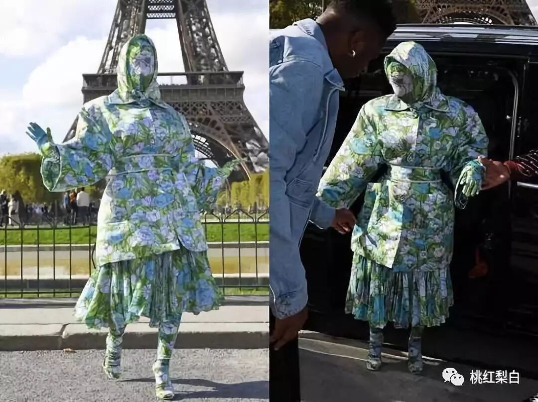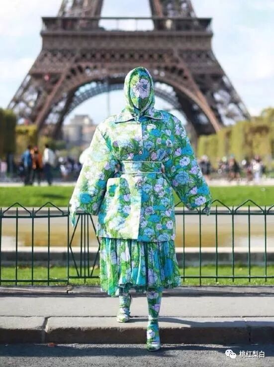 那就是来自Cardi B在巴黎时装周为大家带来的“全副武装共走乡村之路”的全身翠绿碎花style,这一身真的第一眼看到就忍不住想爆笑,很像一颗成了精的白菜……