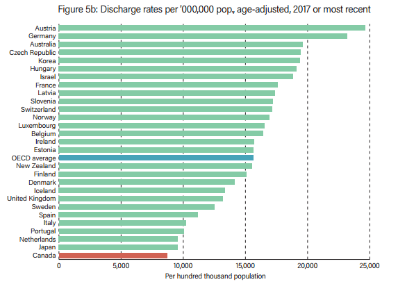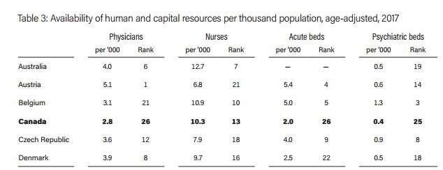 每1000人拥有的各类医生、护士、床位的排名。发现问题了没?加拿大排名几乎都是25名开外,而这项调查一共也只列举了30个国家而已。