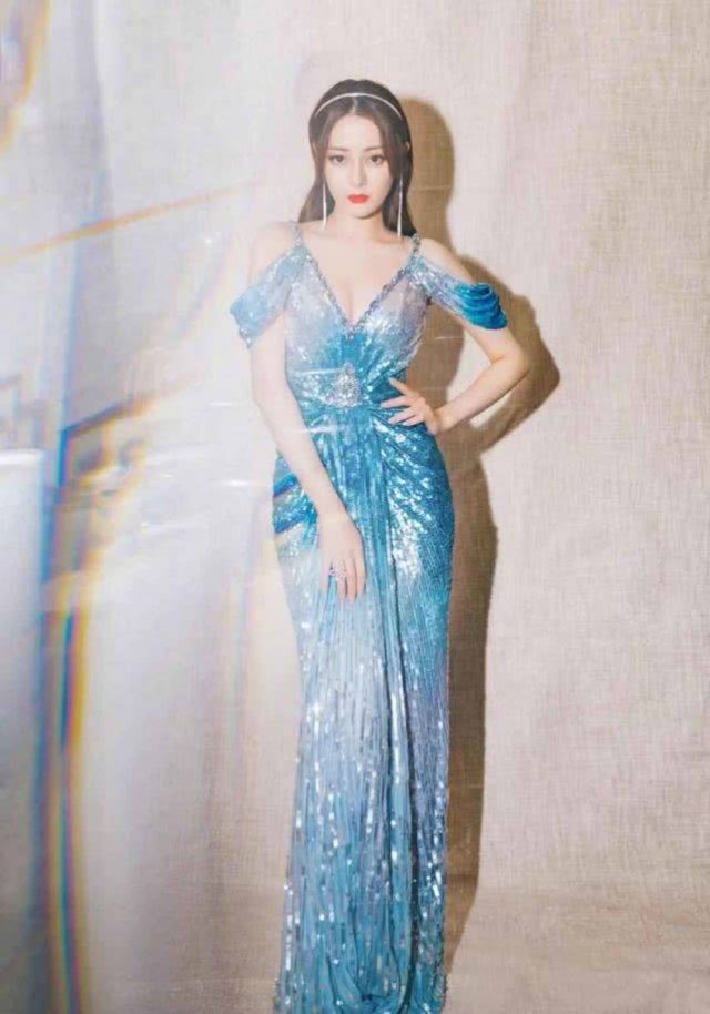 迪丽热巴的造型,小8觉得是全场最佳,她穿着一条水蓝色的礼服裙,裙身上缀满了各种小亮片,腰间还点缀着一大颗宝石有种不闪瞎眼不罢休的气势。