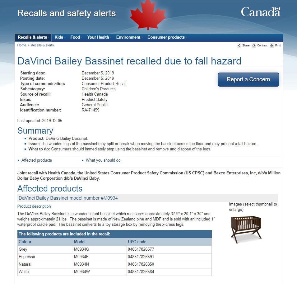 REF:https://www.ctvnews.ca/health/davinci-baby-bassinet-recal...- 温哥华网版权所有,未经授权或许可,严禁转载或摘录