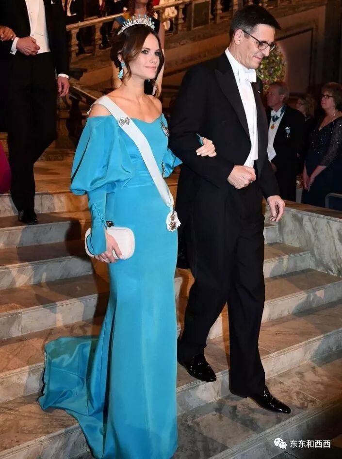 二王妃索菲亚嫁入王室一直非常用心(点这里复习),王冠上新换了绿松石,耳环也配套,搭配绿松石色礼服↓↓
