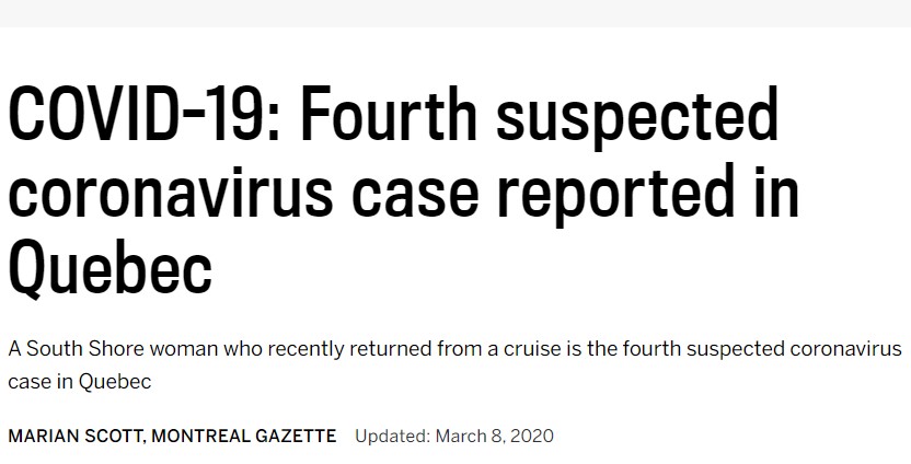 魁北克省刚刚发现了第四例推定新冠病毒病例。