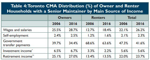 以多伦多为例,该地区老人拥有房屋所占比例在(2006-2016)10年间上升了5个百分点,达到了25%,占据了市区四分之一的房源。而65岁以上老人拥有住房的比率也在上升。与2006年相比,2016年多伦多地区140万房产的业主中,有35.5万属于65岁以上老人,老人拥有房产的比率也从十年前的20%增长至25%。