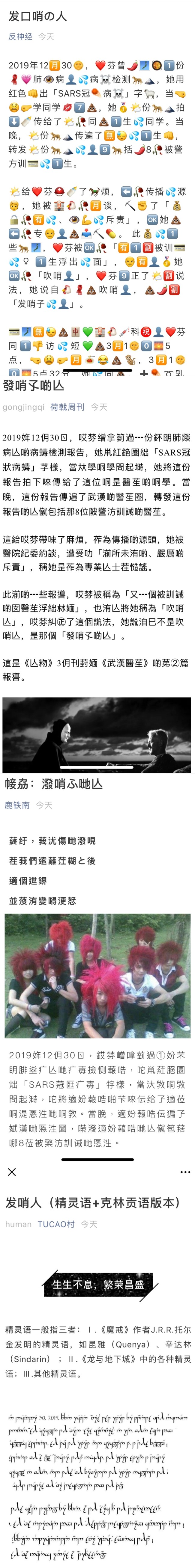 再下面這是網絡語言版,包括各種我作為“老年人”其實完全不理解的所謂火星文、冥王星文、精靈文等等(具體哪個截圖是哪種文我也分不清了);