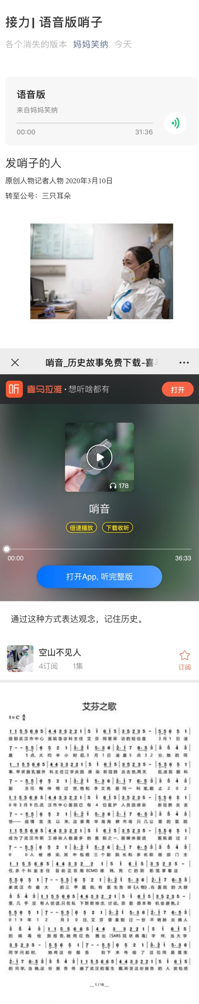 另外這是語音版以及簡譜版,其中特別推薦@仝宗錦老師在“喜馬拉雅”的語音朗誦版“哨音”,聲音渾厚有穿透力,大家可以去下載了聽聽;