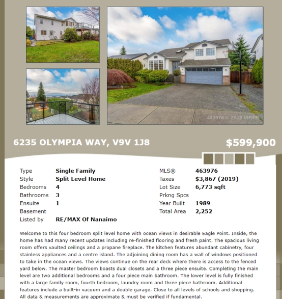 6235 OLYMPIA WAY 海景比照片上更好。纳奈莫北区经典独立屋,昨天降价。