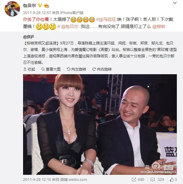是的,白女士一定会讲到包贝尔。次次活动都坐在柳岩身边,次次都无所顾忌地盯着柳岩的胸看。