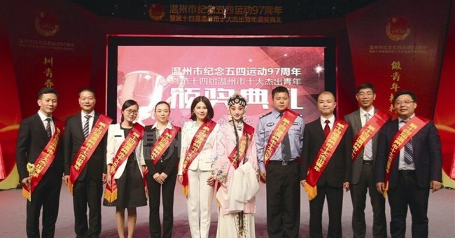 2016年5月,方海華(左肆)被評為溫州市拾大傑出青年。(微博@溫州司法在線)