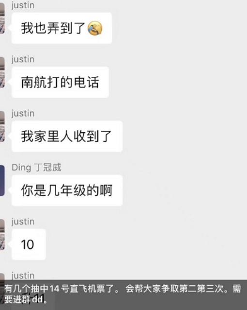 根据微信网友截图爆料,已经有多伦多的华人留学生和家长在购票后收到南航的确认电话。