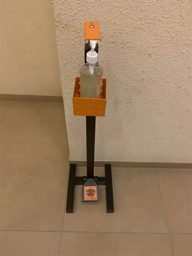 并且,宜家还强烈推荐大家使用入口处的踏板式洗手液:踩踩更健康哦~