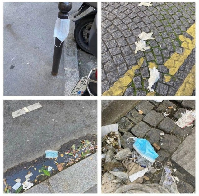 “解封”后,法国的大街小巷随处可见乱丢的口罩和手套。