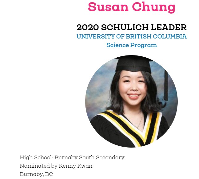 舒利希领袖奖学金是一项和加拿大20所大学合作,针对有兴趣攻读科学、技术、工程或数学(STEM)专业本科的12年级中学生所设的奖学金,每年从约30万名备选中学生中,由各中学提名一人参与角逐,最后在1,500位提名人中选出100人进行奖励,其中50人获得10万元奖学金,50人获得8万元奖学金。