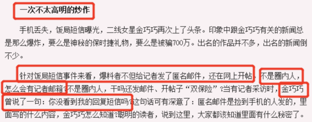 唯一承认过的“亲男友”都这样拿来开刀,可想而知金巧巧的其他传闻有多精彩。和当年的中国首富国美黄光裕传过绯闻,那个时代的爆料文撰写手法也是很有野性;