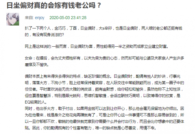 同样的思路,到今天也还有网友从“卦象”角度分析金巧巧嫁入豪门的合理性↓