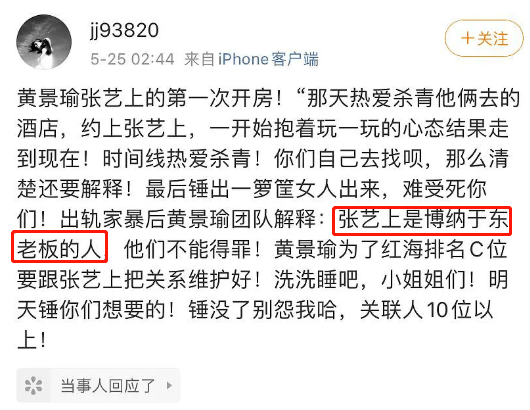 “以夫为荣为贵”。“配偶唯一缺点是心思善变,用情不专”。也不知道故事走向和旁人结论哪一个先发生,总之从现状看,这一“卦”,还真准了。2这几年大佬们越发神隐,“干爹”一类的江湖传说却并不遥远。上个月黄景瑜前妻助理跳出来的一顿爆料,爆出黄景瑜P友竟是博纳老板的人。