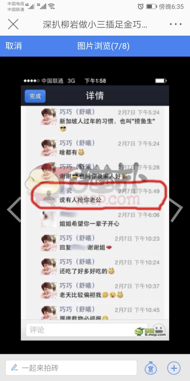 最开始人们还在疑惑孩子的生父,直到原配这时候站出来撕于老板要家产。两人离婚的消息随之爆出来,大概也是因此,舆论把金巧巧认成了这个小三。想来也是蛮讽刺。原配当年各种大敌当前都选择隐忍,哪怕最后把婚姻输掉也愿意为男人留一分面子。但金巧巧这肚子一大,意味着有法律承认的下一代要来从她和孩子们池子里分一杯羹。于是,底裤不能给于老板留了。好现实的豪门定律。不过,老板的猎艳录,也当然不可能因为金巧巧女儿的出生而断更。紧接着,我们看到金巧巧朋友圈“被通知自己被三”: