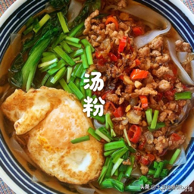这一碗,虽然写着汤粉,但也是面的一种,有鸡蛋有肉末,外加青菜。太诱人了。