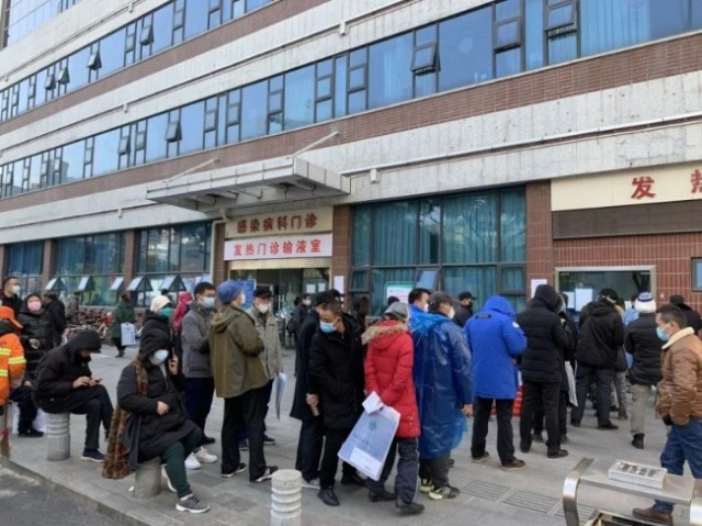 2020年1月31日,武漢市協和醫院,發熱門診門前排隊看病的市民。圖源:人民視覺