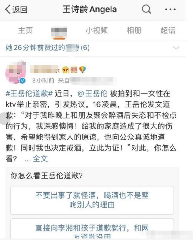 不久之后,王岳伦本人也发布道歉声明,称自己是醉酒后失态,出现了不检点的行为,希望能得到家人原谅,同时也向公众真诚道歉,未来将会戒酒。