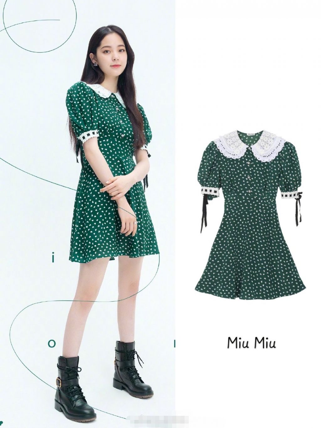 而這件綠色愛心波點連衣裙可謂是壹股清流!除了歐陽娜娜,韓國林允兒也穿過這條裙子,他的獨特設計就在於脖子和胳膊的拼接處用了白色針織的款式。