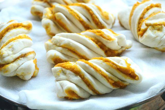花卷的螺旋,有一种垂直度的感觉,更多的像是一种来自包子的演变。很多西式面包,螺旋更多的是横向螺旋。这样可以最大程度地让变化均匀分布。今天我们就来做一款南瓜口味的花卷,它有点中西结合的味道哟。秋天多吃南瓜,教你好吃又新鲜的做法,当早餐香甜松软!