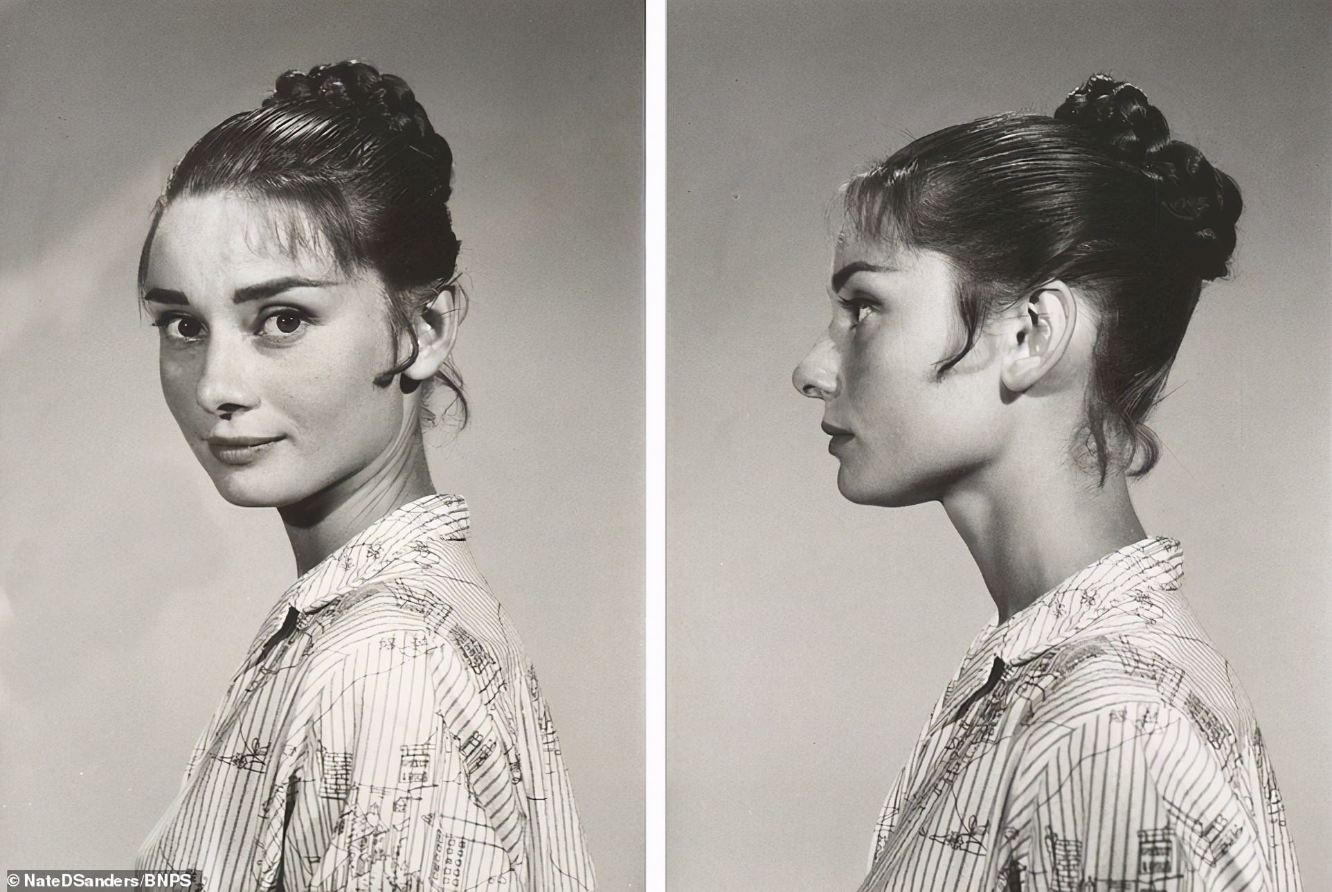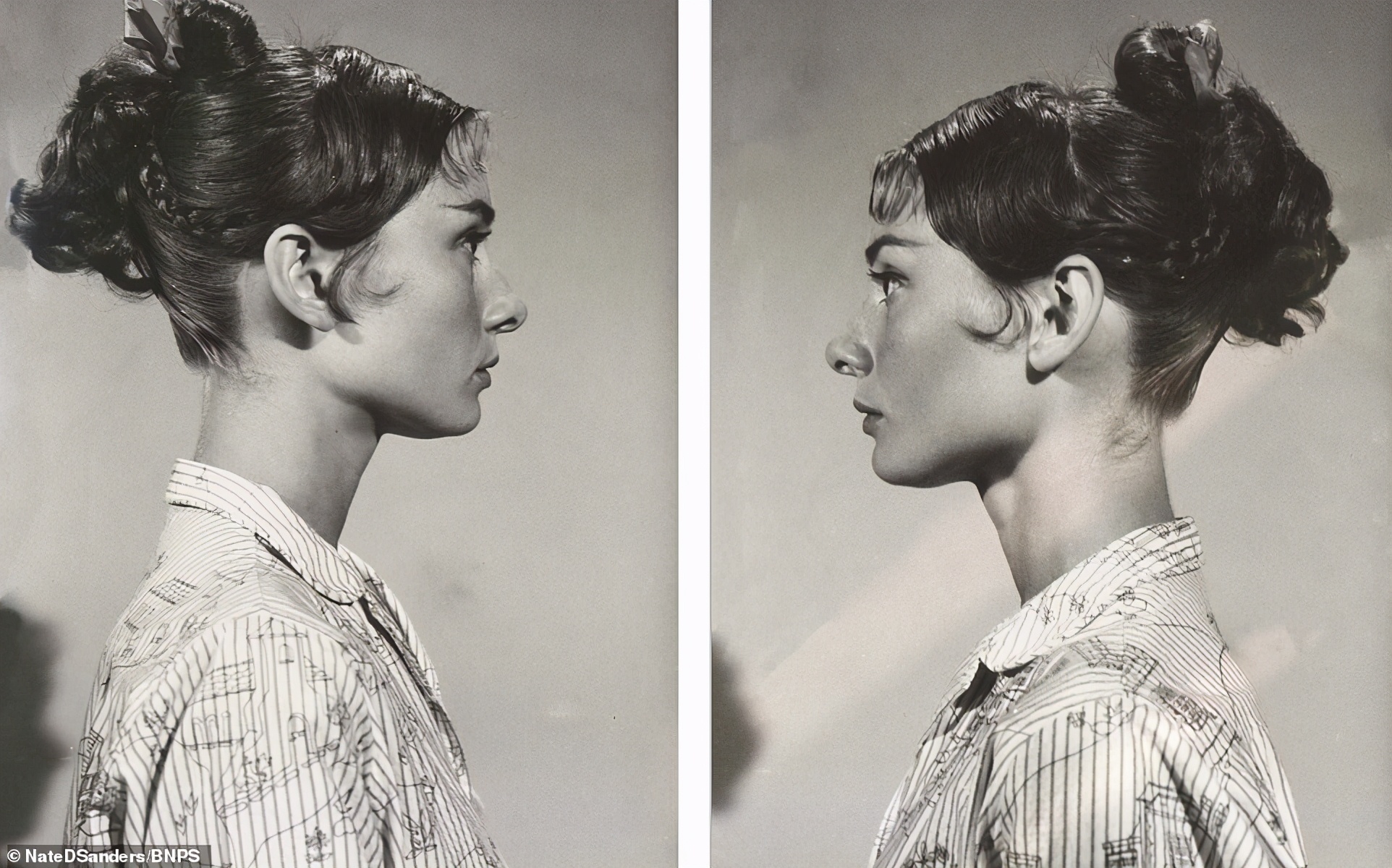 这些照片以不同的角度展现了赫本的美,其中一对照片以肖像照的形式展示了她的正面和侧面,而侧面看得出,赫本的鼻梁真的很高。