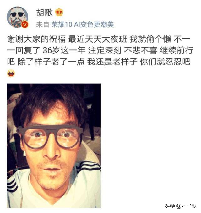 還記得胡歌36歲生日的時候,他發了壹張自拍,感謝大家的祝福。表示他很忙,所有的祝福,不能壹壹回復了。表示自己還是老樣子,除了樣子變老了壹些,還是要繼續努力前行。