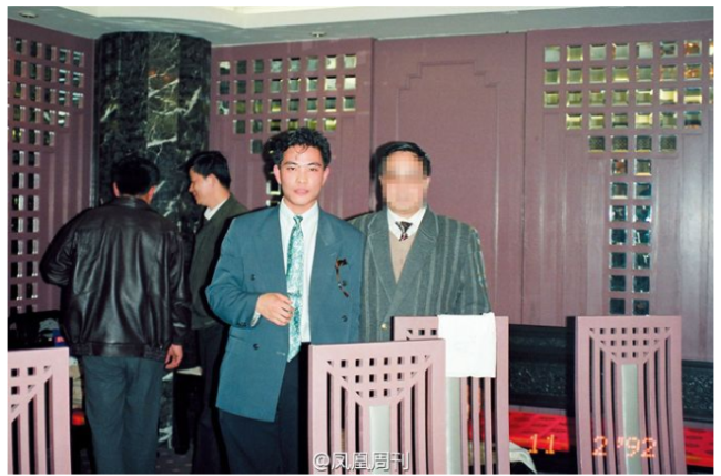1992年11月2日,23歲的程慕陽與友人在宴會後合影。圖片來源:鳳凰周刊