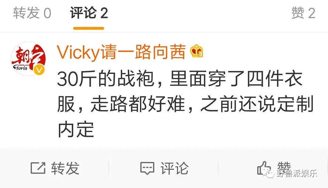 而宋茜在采访中就透露说,这身女神装重达30斤,一共有四件套组成,衣服里面还有发光材料,宋茜粉丝则解释说,这就是显胖的原因。