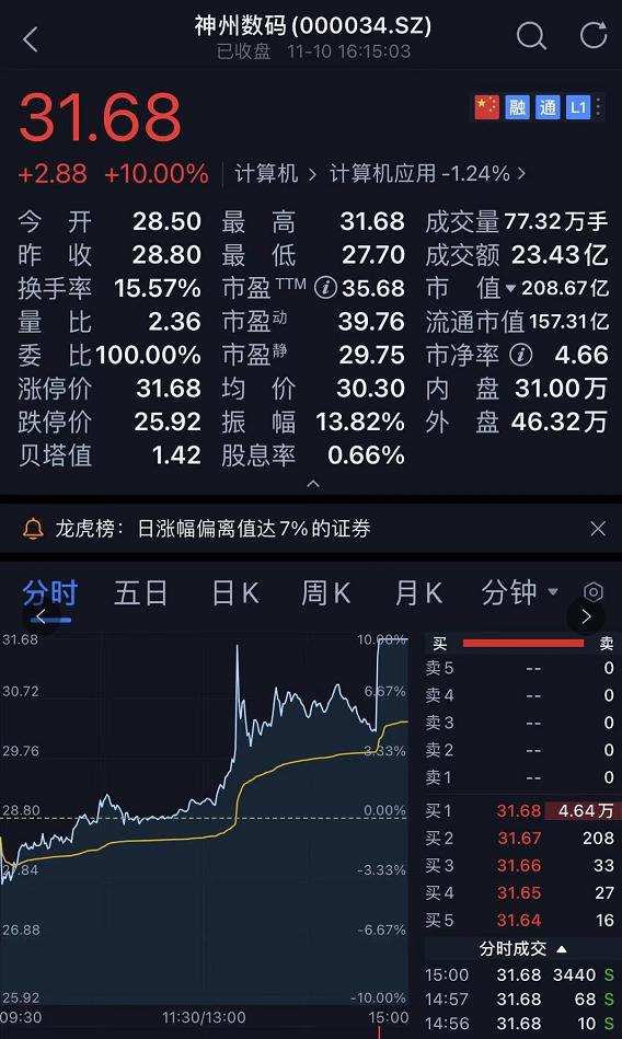 神州數碼封漲停