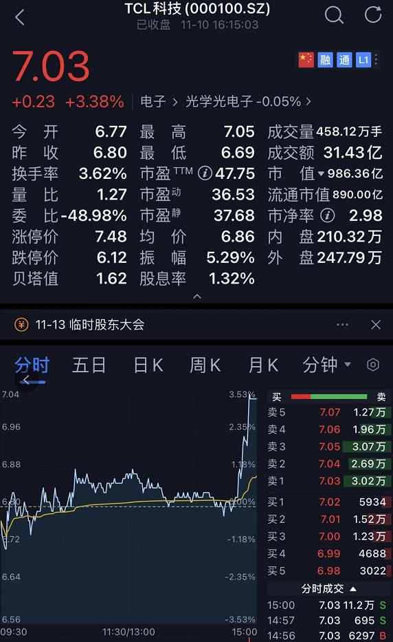 受上述消息影響,A 股的神州數碼直接拉漲停,股價報 31.68 元 / 股,成交額 23.43 億元。而 TCL 科技尾盤直線拉漲。