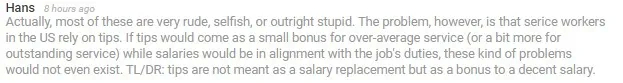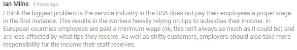 但問題在於,美國的服務人員依靠小費。